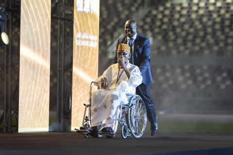 Wheeled onto the stage by the president of the Sports Writers Association of Ghana (SWAG), Kwabena Yeboah, Lartey drew admiration from the audience with his smiling face, eloquent voice and grateful heart. He received an overwhelming standing ovation.