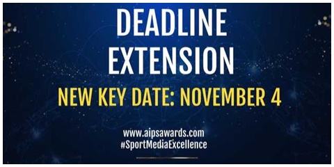 Following the request of many national associations present at the 84th AIPS Congress in Rome, the AIPS Sport Media Awards announce a three-week extension for submissions, thus rescheduling the deadline from October 14 to November 4.