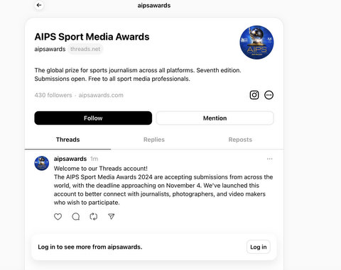 The AIPS Sport Media Awards are already present on Facebook (/aipsawards), Instagram (@aipsawards), and X (formerly Twitter) (@aipsawards). With this new addition, we aim to broaden our reach and connect with a more diverse audience as we continue the search for sport media excellence.