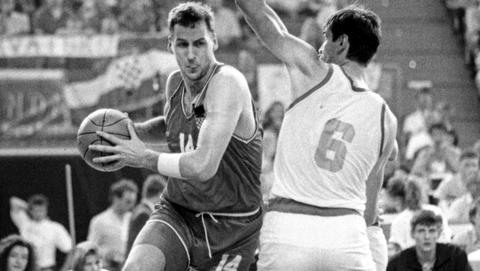 Krešo Ćosić. Čovjek ispred svog vremena. Prvi moj susret s njim nije bija na terenu. Doša je za trenera u Split sezonu 83/84 i dosta puta san ostaja na treningu gledat kako maltretira Sobina i ekipu. Dosta stvari koje je radija nisan nikad vidija prije. Njegov pogled unaprid je bija nevjerovatan. Sa 18 godina je uvalija Divca u reprezentaciju. Sa 19 Tonija, Đorđevića i mene. I ne samo da smo bili u ekipi nego smo i igrali. Prvi moj nastup je Atena 87’. Igra san više manje samo one slabe utakmice. U borbi za broncu protiv Španjolaca nisan igra ali kako su svi visoki imali po 4 faula desetak minuta prije kraja pošalje mene Krešo na zagrijavanje. Kad su ispali Stojko i Radovanović pogleda on mene ispod kosa pa na klupu prema Grboviću koji je bija jako krilo. Vidin ja da neće bit ništa od mog ulaska i jednostavno krenen sam na izmjenu. Prolazin Kreši iza leđa i on se okrene i pita di ćes ti. Igrat, di ću. Stvarno očeš igrat. Naravno. Ajde onda. Bas tako je išla konverzacija. Tako da je zadnjih 4-5 minuta na terenu bili Divac , Đorđević, Toni i ja. Klinci bez brade i uspili uzest medalju. Krešo je definitivno udarija temelje one slavne generacije i napravija bezbolnu smjenu. Druga priča je vezana za turneju po Americi godinu ranije. Paspalj, Divac i ja zakasnimo na ručak jednu minutu. Taj dan inače u planu bija odlazak u shopping. Zamislite 85-u godinu i shopping u Americi. Tada kad nas nije bilo ničega. Dovede nas bus isprid ogromnog shopping centra i kaže Krešo. Vas trojica pred vrata ostajete vani dva sata i čekate nas za kaznu. Odoše oni unutra i mi nakon po ure procjenimo da su ko zna di i da uđemo tu negdi sta kupit. Cim smo stupili nogon unutra on izviri iza kantuna i viče. Ne, ne gospodo. Vi ne. Kakav kralj pokojni Krešo. Kasnije kad je bija ambasador u Washingtonu bili smo stalno u kontaktu i nismo svjesni koliko je Hrvatska košarka izgubila njegovin preranim odlaskom. Još bi moga puno toga o njemu ali ne želin bit dosadan. Počivaj u miru i fala za sve. O DUDI IVKOVIĆU