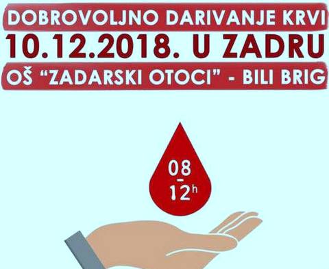 Akcija darivanja će se održati 10. prosinca u dvorani osnovne škole na Bilom Brigu u trajanju od 8 do 12 sati.