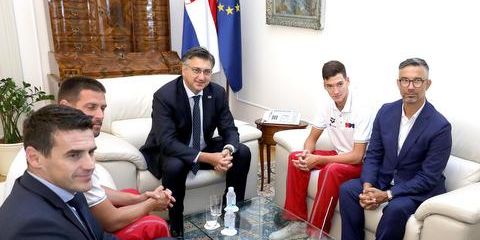 Predsjednik Vlade RH Andrej Plenković primio je u utorak u Banskim dvorima svjetskog juniorskog prvaka i rekordera na 1.500m slobodno Franka Grgića, njegovog trenera Matu Ružića te predsjednika Hrvatskog plivačkog saveza Vladislava Veselicu, priopćeno je iz Ureda predsjednika Vlade.