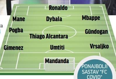 Danas već možemo sastaviti vrlu jaku nogometnu momčad koju povezuje pozitivan nalaz na COVID-19. Od vratara Marca Sportiella (Atalanta) i Stevea Mandande (Marseille), tu su obrambeni igrači Šime Vrsaljko (Atletico), Leo Dubois (Lyon), Samuel Umtiti (Barcelona), Jose Gimenez (Atletico), veznjaci Miralem Pjanić (Barcelona), David Silva (Valencia), Blaise Matuidi (Inter Miami), Thiago Alcantara (Liverpool), Ilkay Gündogan (Manchester City), Paul Pogba (Manchester United), Marouane Fellaini (Shandong Luneng) i napadači Cristiano ,,Ronaldo (Juventus), Paulo Dybala (Juventus), Killian Mbappe (PSG), mane (Liverpool), Callum Hudson-Odoi (Chelsea), Serge Gnabry (Bayern), te mnogi drugi kao i naši Kramarić, Budimir, Pjaca i Brekalo.