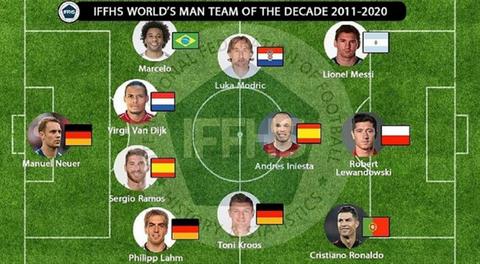 Najboljih 11 prema IFFHS-u: Manuel Neuer - Philipp Lahm, Sergio Ramos, Virgil Van Dijk, Marcelo - Toni Kroos, Andres Iniesta, Luka Modrić - Cristiano Ronaldo, Robert Lewandowski, Lionel Messi.