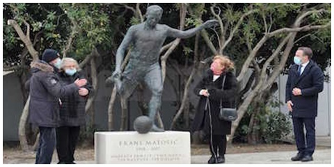 Uslijedilo je otkrivanje spomenika Frani Matošiću skidanjem Hajdukove zastave s istog, a zajedno su to obavile Franine kćerke Katja Spain i Milojka Reić, Franin suigrač i prijatelj Bogdan Kragić te predsjednik Uprave HNK Hajduk Lukša Jakobušić. U znak sjećanja na današnji dan predsjednik Jakobušić uručio je kćerima Frane Matošića dresove Hajduka, na kojima na leđnoj strani piše: Frane Matošić, 739 nastupa, 729 zgoditaka, a sprijeda - današnji datum, 13. veljače 2021., dan kada je otkriven spomenik njihovu ocu, Hajdukovu velikanu.