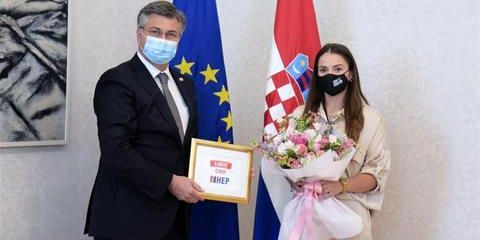 Predsjednik Vlade RH Andrej Plenković primio je u Banskim dvorima svjetsku prvakinju u judu 2021. Barbaru Matić.