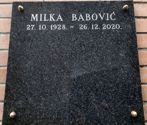 Milka Babović preminula je 26. prosinca 2020. godine u 93. godini života, a spletom raznih okolnosti, njezini posmrtni ostaci tek su 8. rujna 2022. položeni u posljednje počivalište.