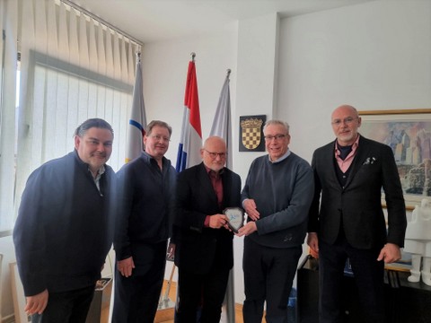 Prilikom razmjene darova čelnik ESF-a Troedssen poklonio je predsjedniku HOO-a Mateši drvenu plaketu sa znakom ESF-a.
