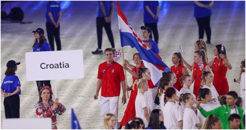 Hrvatsku je na svečanom mimohodu predstavljalo samo desetak (od ukupno 130) sportaša, koje su predvodili stjegonoše - Nikolina Ćaćić (boks) i Matej Nevešćanin (skokovi u vodu). Već samim zborom za nositelje zastave, i Ćaćić i Nevešćanin izrazili su veliko zadovoljstvo, a nakon što su pronijeli hrvatsku trobojnicu stadionom u Krakovu, tom iskustvu dodali su i odrednicu „nazaboravan doživljaj“.