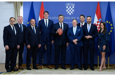 - Volim Hrvatsku! - poručio je, a premijeru Plenkoviću uručio je loptu američkog nogometa.