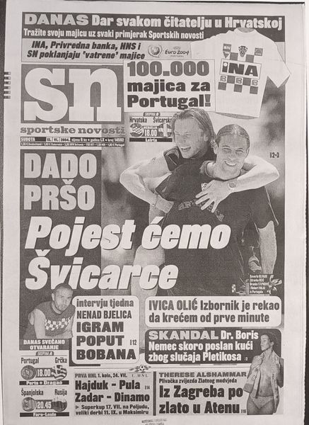 Uoči Europskog nogometnog prvenstva u Portugalu 2004. Sportske novosti su posljednji put tiskane i prodane u 100 tisuća primjeraka. Bilo je to u subotu 12. lipnja 2004. kada smo uz primjerak novina (6 kuna) darovali i prigodne "vatrene" majice. Ukupni bruto prihod te 2004. iznosio je 61 milijun kuna, a neto dobit 2,5 milijuna kuna. Prema rezultatima iduće 2005. godine proglašeni smo najboljim medijskim proizvodom u Hrvatskoj (direktor EPH-a i predsjednik Nadzornog odbora SN tada je bio Stipe Orešković): 70 milijuna kn bruto prihoda i 3,5 milijuna kn neto dobiti, porast prodane naklade za pet posto. Jutarnji list i Večernji list pali su te godine u odnosu na prethodnu za vise od pet posto.