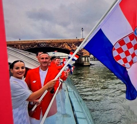 Brod s hrvatskom trobojnicom kojom su mahali strijelac Giovani Cernogoraz i judašica Barbara Matić, zaplovio je Seinom baš u trenucima kada je počinjala najveća kiša. Uz njih, na brodu su bili: Katarina Krišto i Zlatko Kumrić (judo), Marin Ranteš (BMX), Jana Pavalić i Nikola Miljenić (plivanje), Gabrijel Veočić (boks), Donna Vekić, Petra Martić i Nikola Mektić (tenis), Andrej Gaćina, Filip Zeljko, Tomislav Frane Kojić i Ivana Malobabić (stolni tenis), Martin Dolenc (jedrenje), te Martin Jelinić, Filip Glavaš i Sandro Meštrić (rukomet).