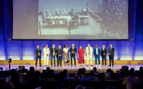 Nakon svog govora, predsjednik AIPS-a pozvao je na pozornicu ostale članove sadašnjeg Izvršnog odbora AIPS-a, stvarajući još jednu iskonsku sliku koja povezuje prošlost sa sadašnjošću.