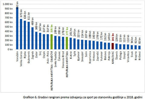 U Strategiji možemo pronaći i konstataciju da svi hrvatski gradovi u prosjeku izdvajaju približno dva i po puta više za sport po glavi stanovnika od Karlovca te da je time sustav sporta u gradu u značajno nepovoljnijoj situaciji od sustava sporta u većini gradova. Ti navodi odnose se također na brojke iz 2018. godine. U Gradu kažu da nemaju svježe podatke o izdvajaju u ostalim gradovima pa ne mogu odgovoriti na pitanje je li situacija i dalje nepovoljna, ali potvrđuju da postoji povećanje i to potkrepljuju brojkama. U 2025. godini Karlovac će izdvojiti za sport 38,73 eura po glavi stanovnika, što je povećanje od 107% u odnosu na 18,71 eura iz 2018. godine (podatak koji je spomenut u Strategiji). Možemo zaključiti da je u ovom segmentu napravljen pomak u proteklih sedam godina, ali isto tako konstatirati kako je s ovih aktualnih 38,73 eura za oko 2 eura tek premašen prosjek iz 2018. godine.