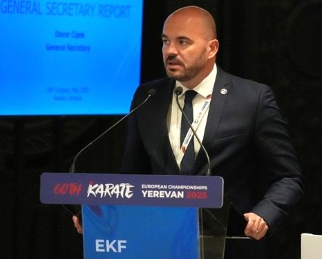 Na sastanku Izvršnog odbora Europskog karate saveza (EKF) Davor Cipek je jednoglasnom odlukom reizabran za glavnog tajnika krovne organizacije europskog karatea. Spomenutu dužnost obnašat će u drugom četverogodišnjem mandatu (do 2029.), a bespogovorni reizbor samo potvrđuje koliko je bio uspješan u prethodne četiri godine kao prvi asistent predsjednika EKF-a Antonija Espinosa.