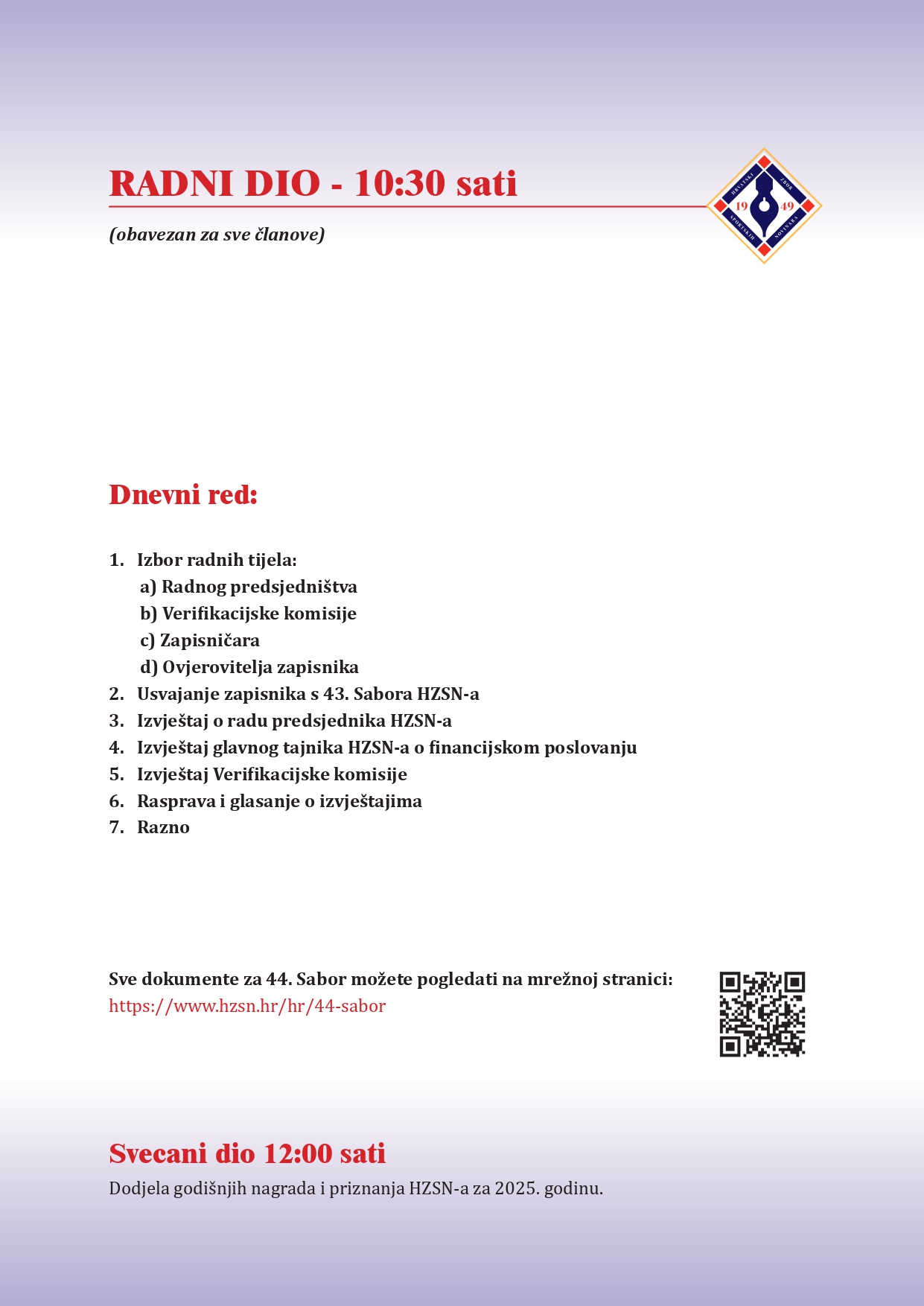 Program će se održati u Kino Edison, gdje redoviti Sabor započinje u 10:30 sati, dok je svečana dodjela nagrada i priznanja na rasporedu od 12:00 sati.